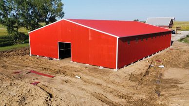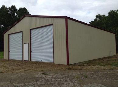 40'x60'x14' eave height has 26 gauge sheet metal, color match screws, two 12'x12' roll-up doors and one 36"x84" steel walk-in door. Free Delivery and Installation on your concrete slab $47,435
